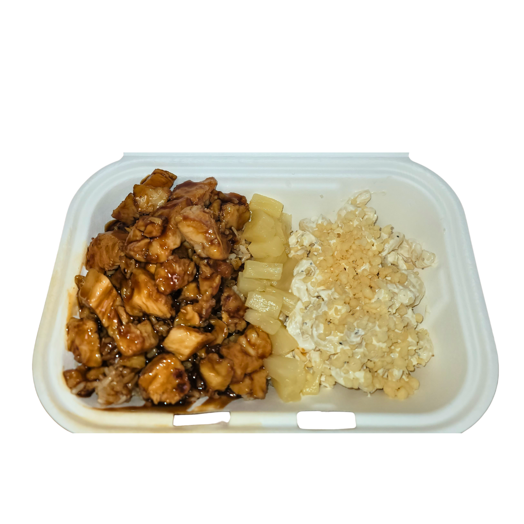 Chicken, sweet onions, and shredded carrots tossed in sweet sesame ginger sauce topped with avocado, cashews, and tempura flakes.
